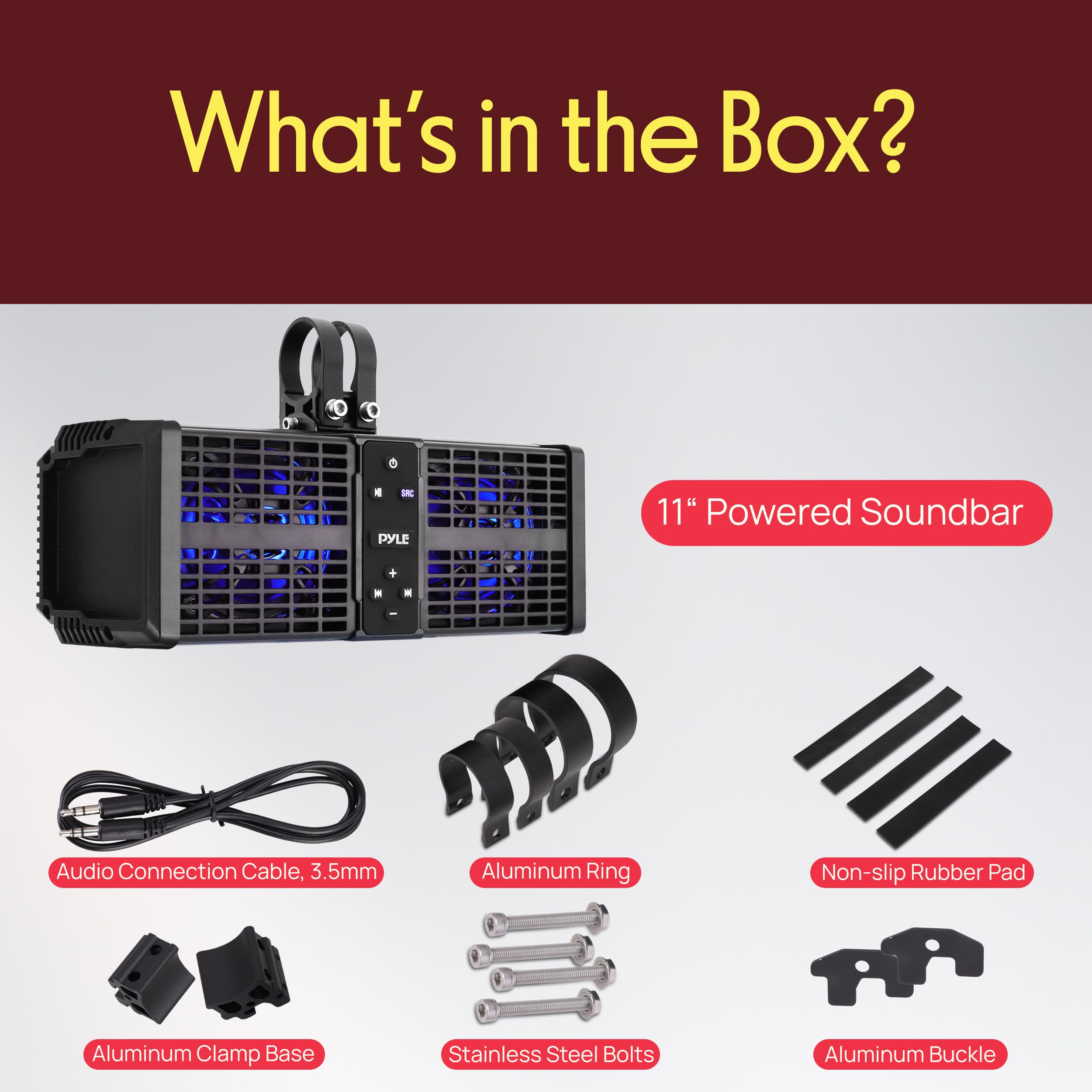 Pyle 11" ATV/UTV Sound Bar, Waterproof Bluetooth UTV Speakers with Built-in Class D Amplifier, 2-Way Speaker System, LED Lights, AUX Input, RCA Output – Off-Road ATV Sound Bar UTV Sound System