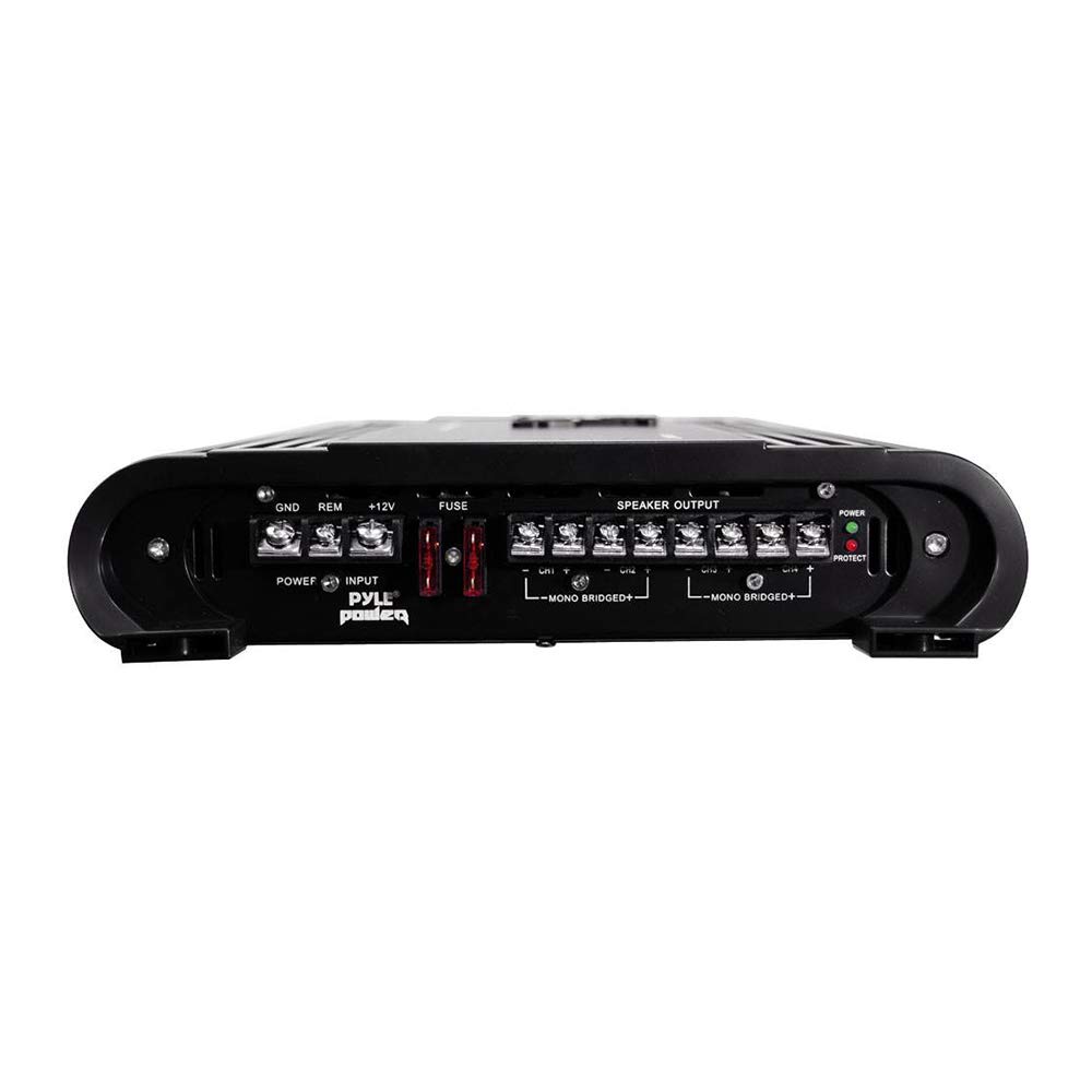 Pyle 4 Channel Car Stereo Amplifier - 4000W High Power 4-Channel Bridgeable Audio Sound Auto Small Speaker Amp Box w/ MOSFET, Crossover, Bass Boost Control, Silver Plated RCA Input Output -PLA4478